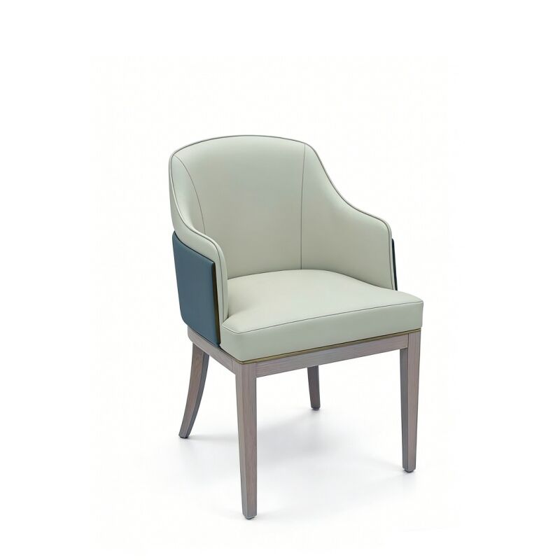 Eleganz trifft auf Langlebigkeit in seiner Konstruktion: Die Rückenlehne ist nahtlos mit einer integrierten Edelstahlverkleidung verbunden, die eine elegante, luxuriöse Note hinzufügt, die sowohl von vorne als auch von hinten Raffinesse ausstrahlt. Gebaut mit einem stabilen Massivholzrahmen, gewährleistet dieser Esszimmerstuhl eine langlebige Leistung in stark frequentierten gewerblichen Umgebungen.